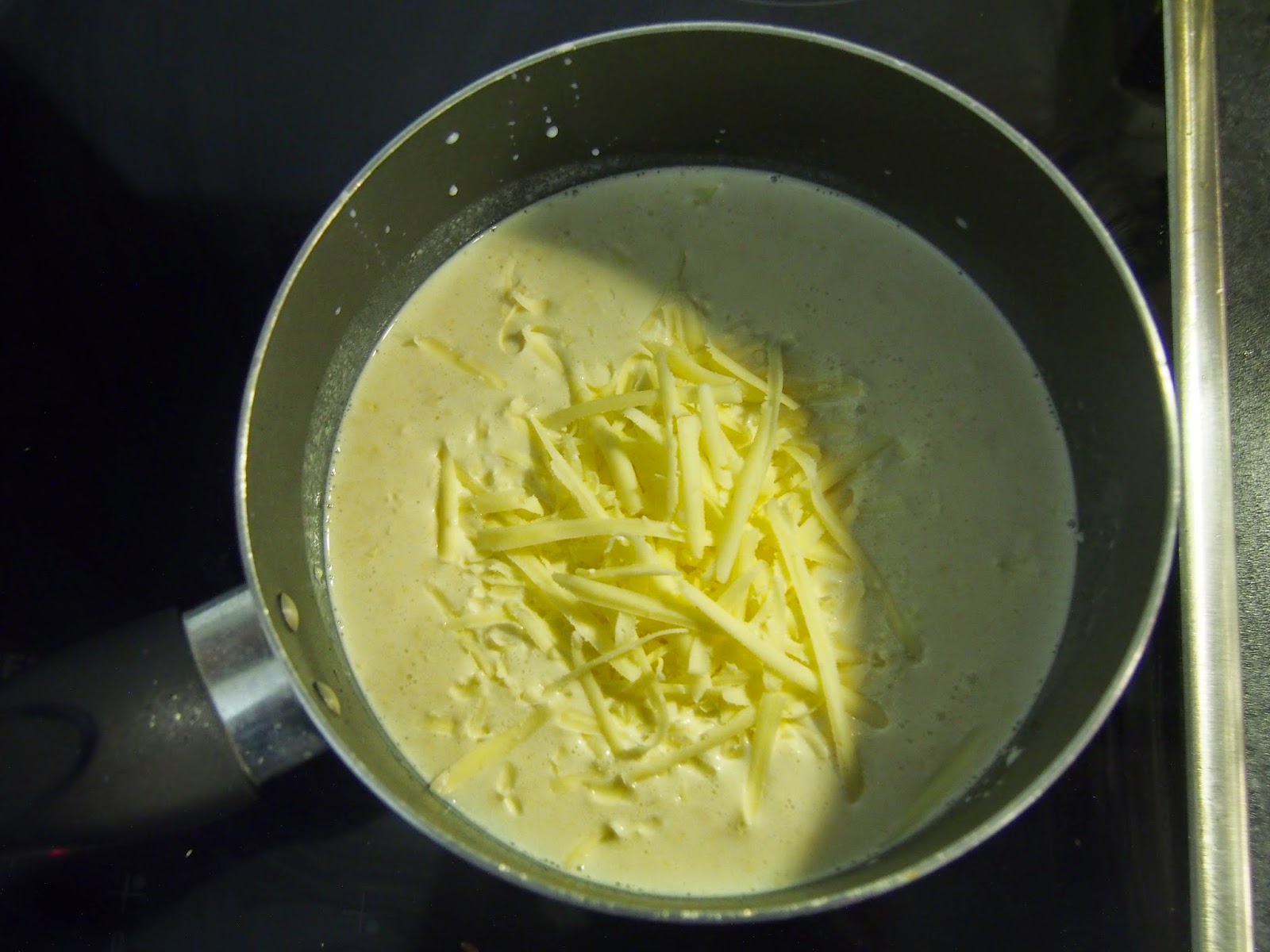 Step 8. Make cheese sauce, now I cheated because it is one thing I cannot make well from scratch! I let Mr. Colman help me out on this part but I had to add some extra cheese for thickness and taste.