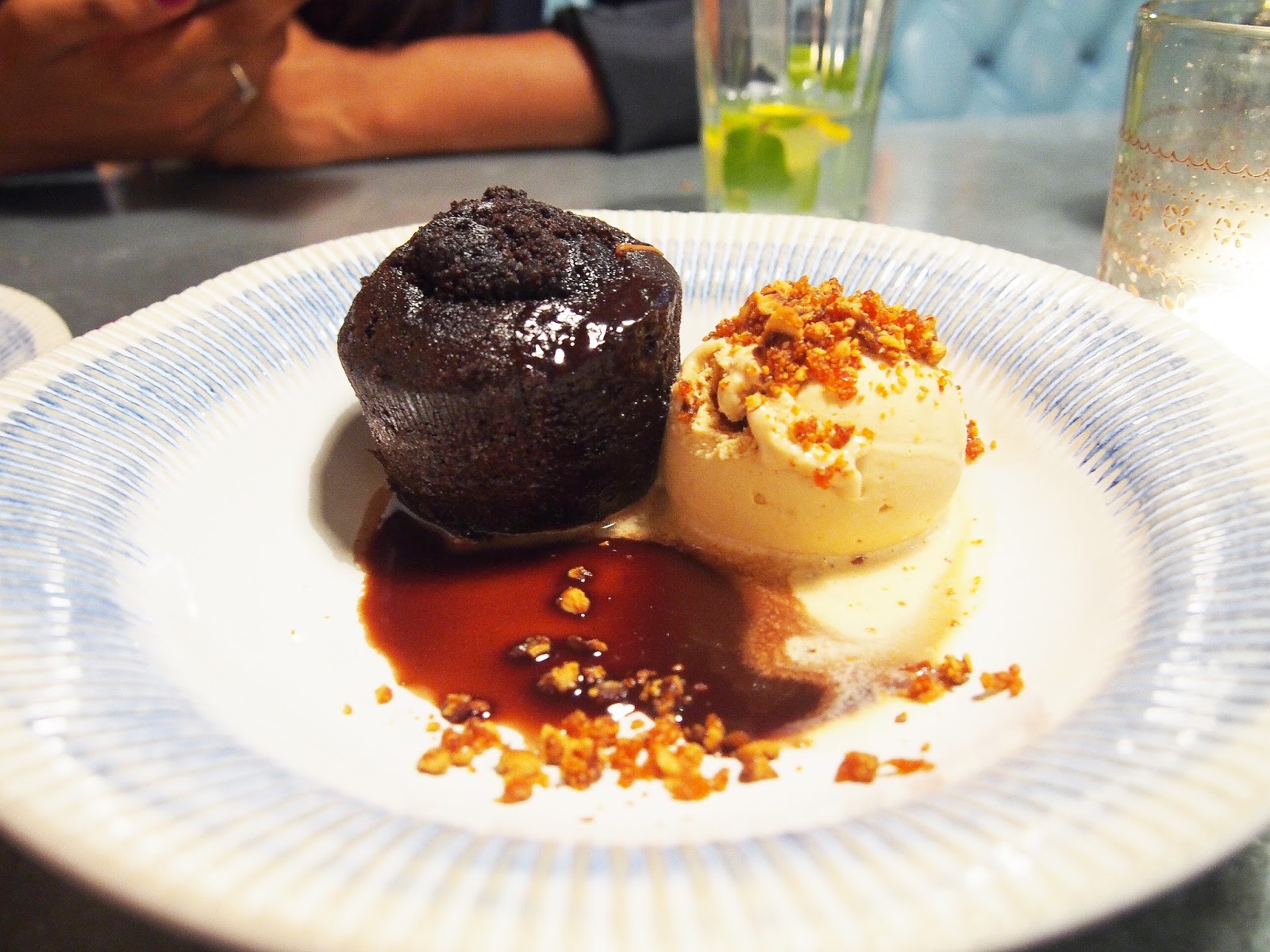 We decided to have the Amalfi Lemon Meringue Cheesecake, which a mascarpone cheese and lemon based cheesecake topped with Italian meringue and a drizzling of lemon curd and blackcurrants around the bottom of it. The Molten Chocolate Praline Pudding was the last dish of the night, a warm chocolate cake that had a centre of oozing melted chocolate, with a side of salted caramel ice-cream and praline pieces.